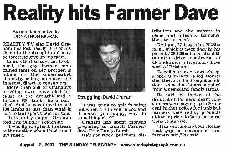 The price volatility in the market was a real concern because as producers we are at the bottom of the food chain. This is what makes Farmer Dave's online sales such a successful concept. Using his fame, Dave has built a website that has received an estimated 100,000 visitors in the past eight months.