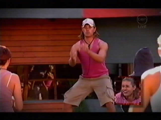 Day 479.27am - David is leading the aerobics this morning. Some of the moves include "sheer the sheep", "milk the cow" and "lay the egg". Again Ashley is jumping around for amusement, and needs to be brought into line by David. Its not long before the housemates are exhausted, and David leads them through some breathing before wishing Danielle happy 19th birthday.