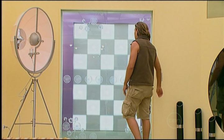 6.12pm - The housemates have a jumprope outside with the garden hose. David runs through it without jumping, provoking lots of yelling from the other housemates. |