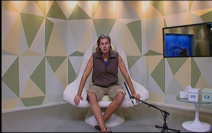 11:28pm: David is in the diary room asking BB to leave. This was fueled by an argument with Perry in which David exclaimed he didn't want to play the game any longer and threw, or as Perry has stated, ripped off his microphone. Krystal is reassuring Perry and just talking over in the incident with her. Claire is sitting on the couch looking a bit stunned, saying she has never seen this side of David. Perry is saying that it's not in her character to make someone else look bad. Krystal says that she understands her intentions and not to worry. Krystal starts a made up song. Comm break. 11:33pm: Camilla and Darren are having a shower after a sauna. Jamie has entered the kitchen, but not saying much. Perry says that she hopes David is alright. Krystal says she feels for David but she seems not concerned at all that David might well be leaving. She thinks that the guy has born it on himself. Perry seems to agree. Krystal says that she would've taken the news that David thinks that she is playing the game had he told her on her own, and not at the table. Krystal wonders if anyone heard that fart, but they say they didn't. BB tells housemates that their are batteries in the dumbwaiter in the bedroom. No one heard it, so he does it again. Krystal seems very excited that they are getting batteries in a slightly different way. Housemates change their batteries. Comm break. 11:53pm: Jamie is talking about a girlfriend he used to have, and he starts talking about his first ever kiss with a girl. Mike cuts back in. We return to Perry saying she can't sleep. Krystal spirts out "I always wipe my bum no matter what". Perry and someone else are talking about David in the diary room and BB beeps it all out. She again says she is really worried about him. Camilla says that she thinks he's been sensitive the past couple of weeks. Comm break. 12:05am: Krystal and Camilla are chatting about nothing. Darren says he's not a big fan of Kettle chips. Almost everyone else sticks up for them. Perry repeats that she is concerned for David, and she is sad for him being sad. Perry says she didn't mean to get him worked up. She says she gave him the option of talking about it later, not immediately. Camilla says that he walked away from a convo with her yesterday. Camilla and Perry continue to talk about previous times Dave has had a weird reaction to something. Camilla says she is tired. Perry wants to go and talk to BB, but she can't. Comm break. 12:24am: Camilla is saying that Krystal got a conversation she has wanted to come out for a while to come out tonight, so she should forgo her right to seem a little sad. Krystal wonders what Gaelan is doing. Jamie reckons that Katie would be off doing little promo gigs. Jamie reckons she would still be doing that stuff, even though they say it's been a month (no way it's been a month!') Perry tries to get to sleep, and there are goodnight calls all round. Perry hopes that BB doesn't wake them up too early. Seems everyone is in bed. Jamie seems really awake humming, whistling and singing tunes out. Jamie still whistling. God that would be annoying. Comm break. 12:36am: Basically silence in the bedroom. Jamie says it's sleepy time. Darren tells Jamie that he just looked in the mirror. Jamie says he does it all the time! Jamie says he's going to sleep now. Silence. David is in the kitchen. Darren comes out, and he sees him. He wonders if he is alright. Darren tells him the lights are still on.
