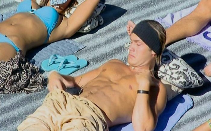 3.19pm - The boys are playing cricket in the backyard with makeshift items such as a pillow and ornamental ball. Camilla and David have been told to cut the grass in the backyard with nail clippers as punishment for Camilla helping David with his cleaning task (only he may do it). They comment to each other they are concerned about where the makeshift cricket ball is going to end up. Just as they say this the ball is hit very close to them, and they duck down. Jamie comes over and they tell him they are worried about the ball. David is more confronting - he asks why Jamie keeps on going with his antics which keep breaking things in the house. He has struggled to understand why the boys have no respect for property and just keep going with it. David says it.s something you can get away with when you are a child because you don't understand the value of property, but the housemates are old enough now to comprehend it. Jamie asks if this is a personal thing - but David replies he's asking Jamie now because Jamie is right in front of him. Jamie says there is a risk factor, and the factor makes it funny. Jamie doesn't see the risk being too great in the Big Brother house. Ashley goes outside and is upset David didn't take the points off himself. This is because Ashley nominated David for 1 point. Gaelan comes over and tells Ashley that David just wants to leave the house. Ashley is obviously upset, and gets teary-eyed. "Words couldn't express how much gratitude I have for him... I feel like a dog". Ashley goes back inside and thanks David again, but wonders why David did what he did. David says he will find out when he eventually leaves the house; they can't talk about it now.
